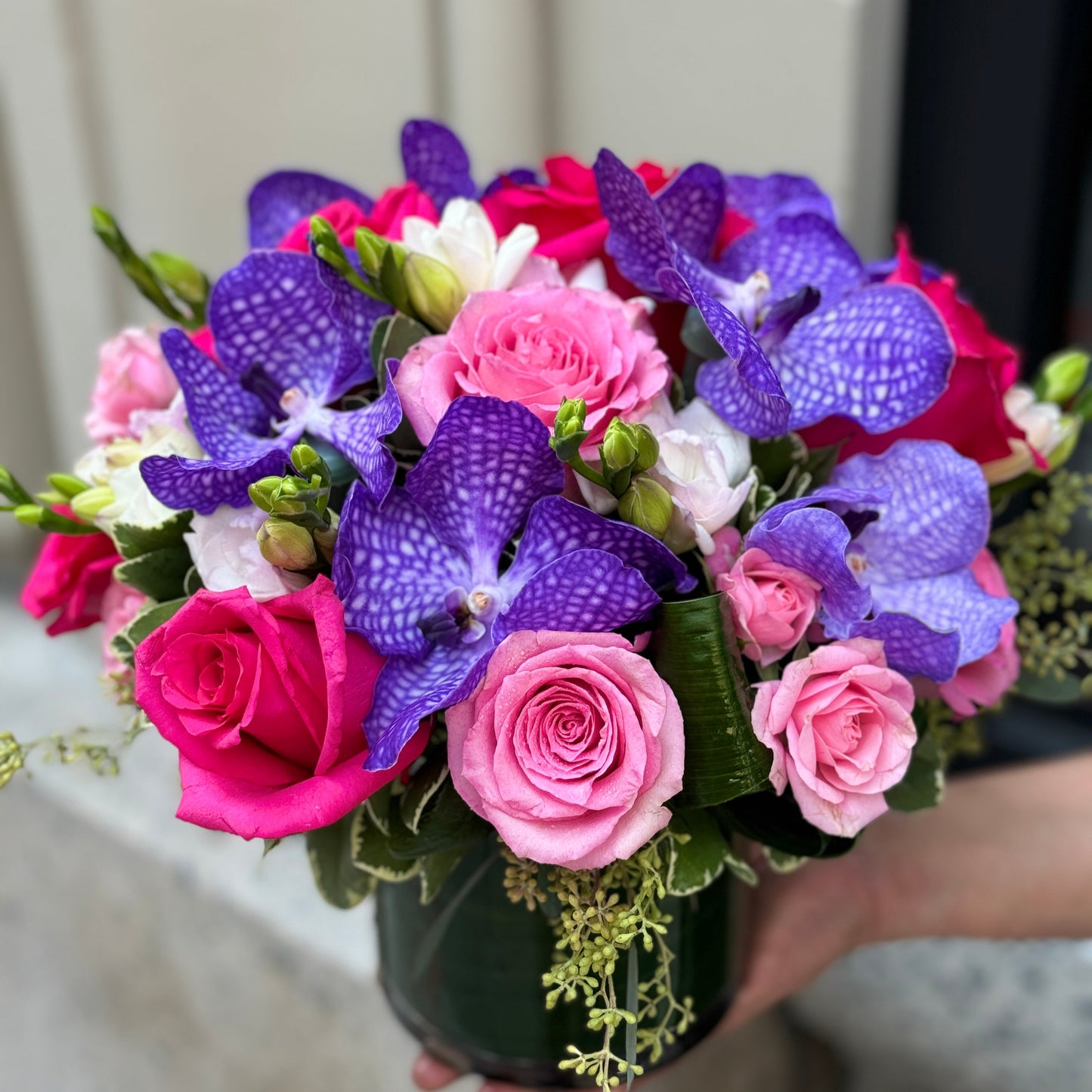 Aa lush and vibrant play on purples and pinks. Perfect gift for someone special or a great centerpiece for your next dinner party.
