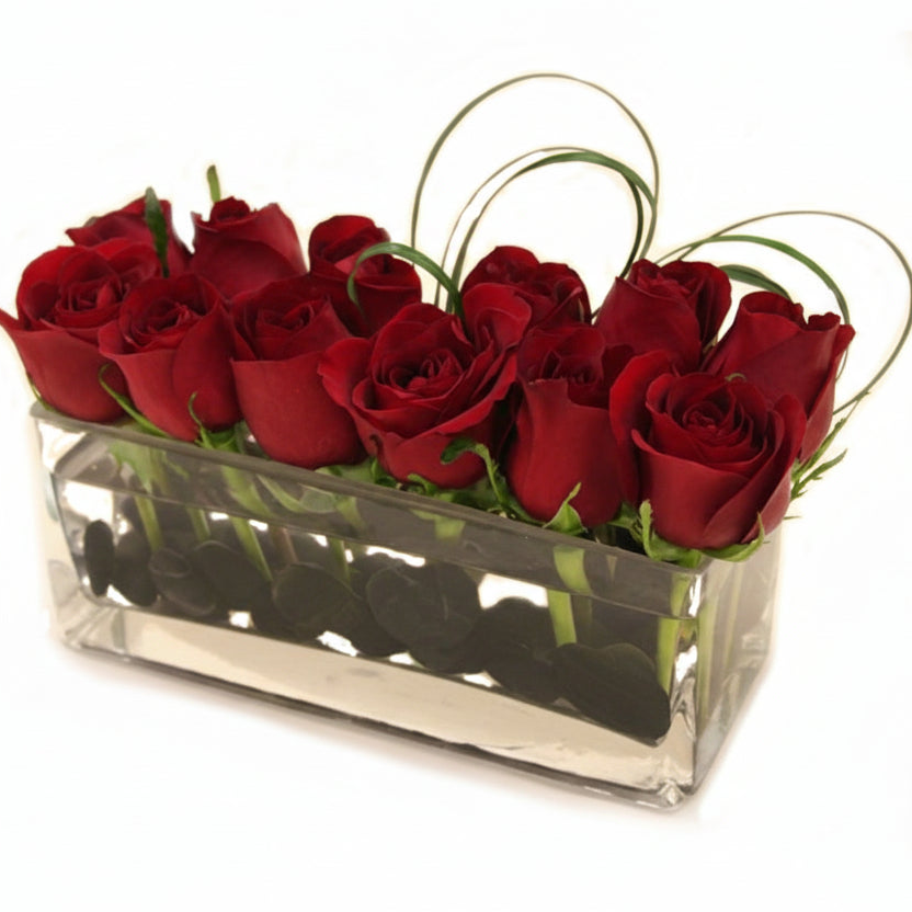 Send flowers to that person in your life that appreciates modern, artistic designs. Cosmopolitan is City Blossoms contemporary presentation of a dozen short stem red roses with the stems resting on a bed of black river stones. Choose red, pink, lavender or white roses.